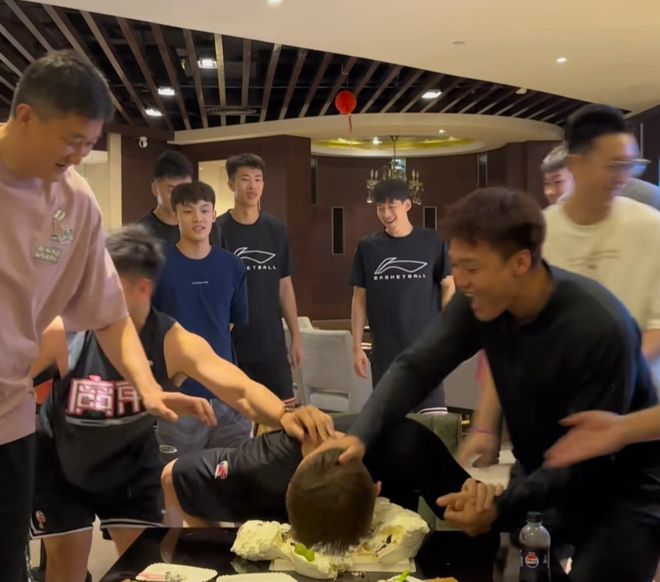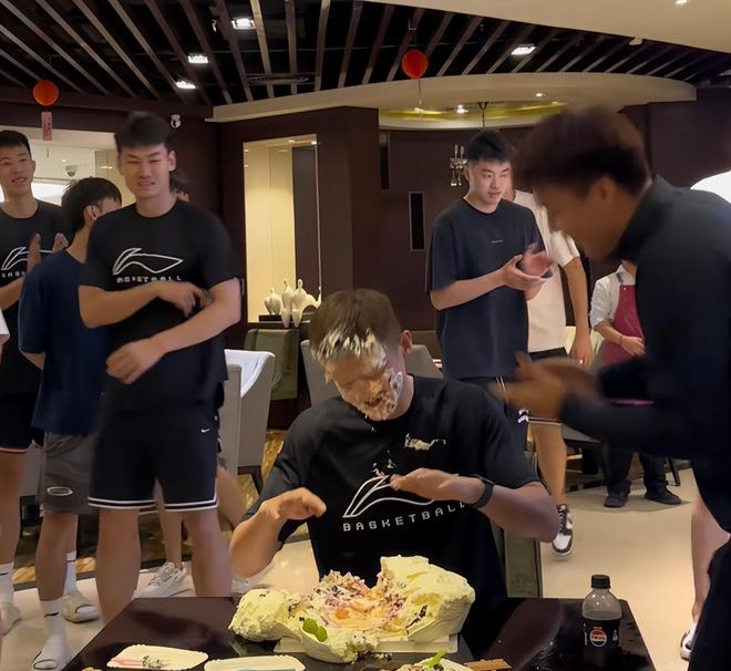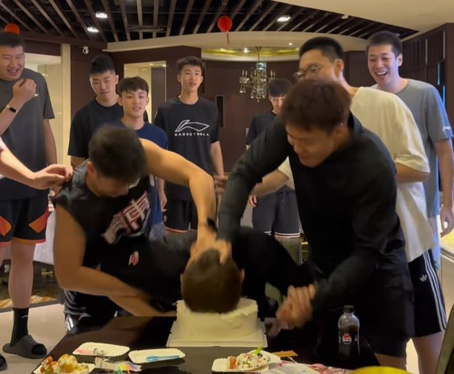 周鹏庆生会!赵睿摁头砸蛋糕玩嗨,杜锋下手慢了点,李炎哲惊讶