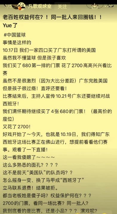 广东男篮七连胜!但是却有球迷吐槽5400元白花了,对于西班牙队和美国队为什么会出现换马甲球员?相关方面的解释让人哭笑不得!
