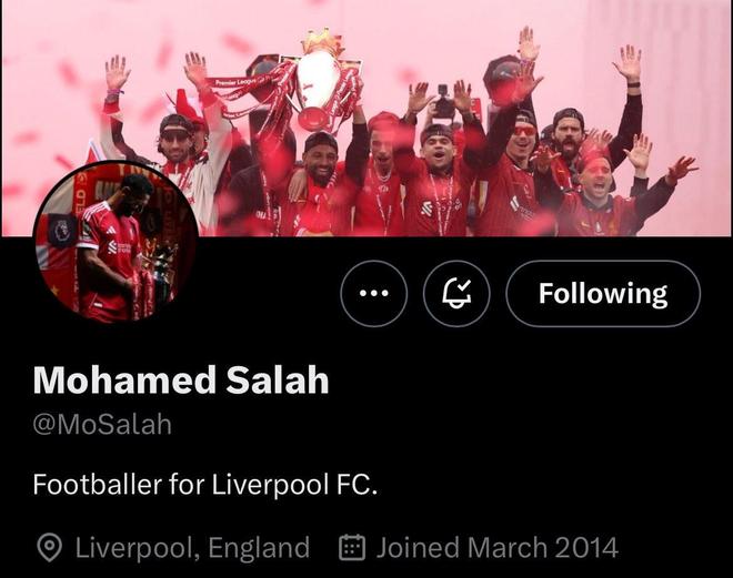 早些时候,萨拉赫更新了社交媒体账号个人资料,将自己身穿利物浦球衣的头像换成了个人家庭生活照。将夺冠庆祝头图换成了纯灰图片。